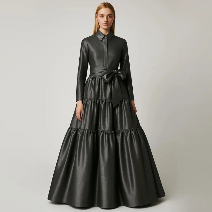 Ürün: Fırfırlı & Katman Detaylı Maxi Tafta Gömlek Elbise