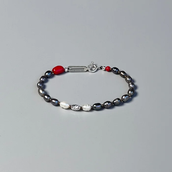 Siyah inci, Mercan , Beyaz inci ve 925K Gümüş ile tasarlanmıştır.
