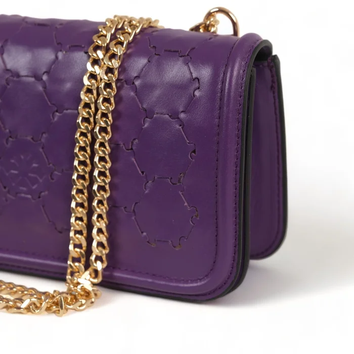 İç kısmı geri dönüştürülmüş polyester ile astarlanmış olup fermuarlı bir cep ve telefon kılıfı içeriyor. Elde örülen gövdesi, bu çok yönlü çantaya benzersiz bir dokunuş katıyor. Zincir sapı çift kat olarak omuza veya tek kat olarak çapraz asılabiliyor. En: 23 cm Yükseklik: 12 cm Derinlik: 6cm Zincir sap uzunluğu omuz askısı halinde: 27 cm Zincir sap uzunluğu çapraz asılarak: 50 cm