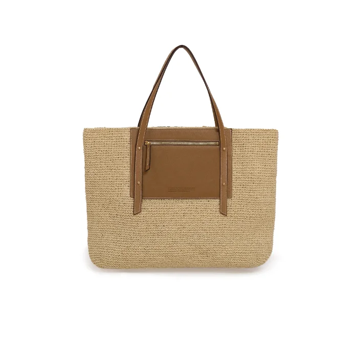 Ürün: Rafya Hasır Ve Bio Deri Çanta Tan