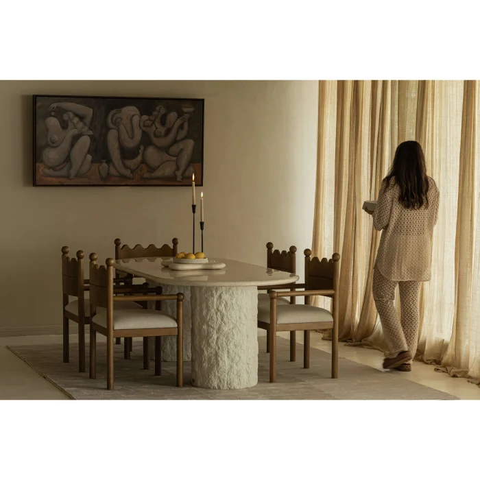 Ürün: Patlo-traverten Mermer Yemek Masası