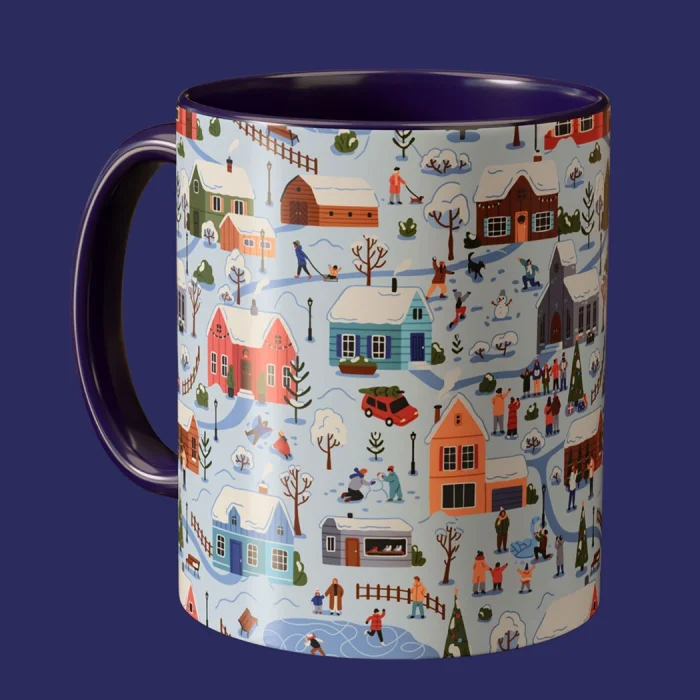 - Özel Tasarım: Mavi kar tonlarında, kış kasabası temalı desen, sıcak içeceklerinizi daha keyifli hale getirir.
