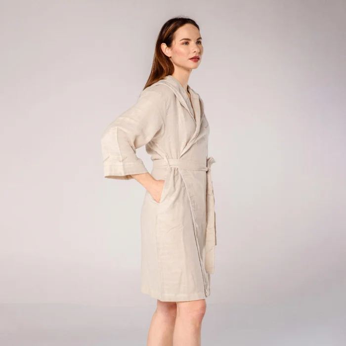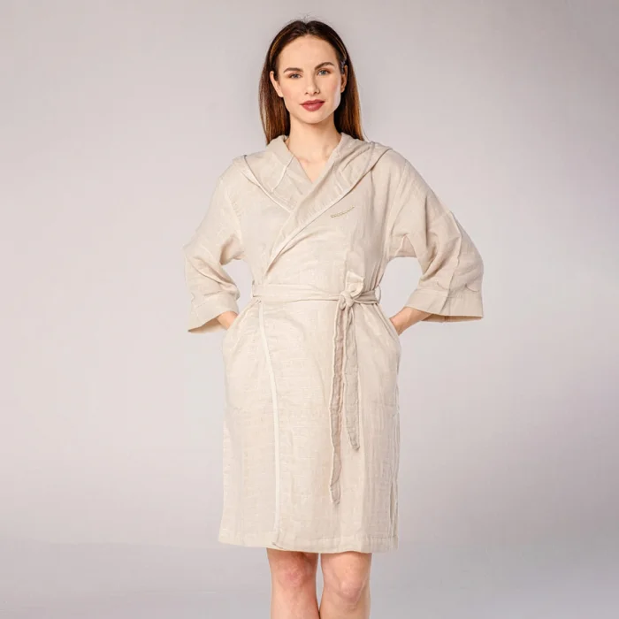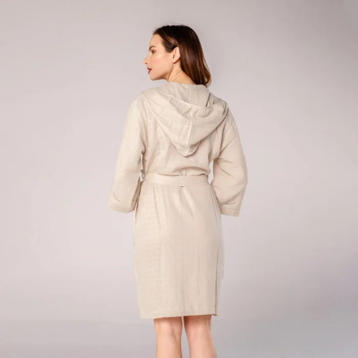 Başak Nakışlı Müslin Bornoz, müslin kumaşından üretilmiştir.