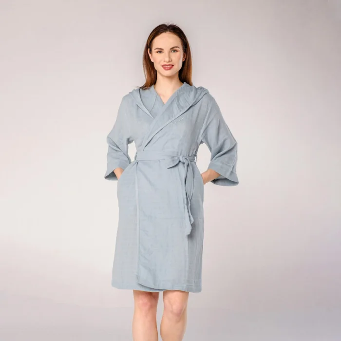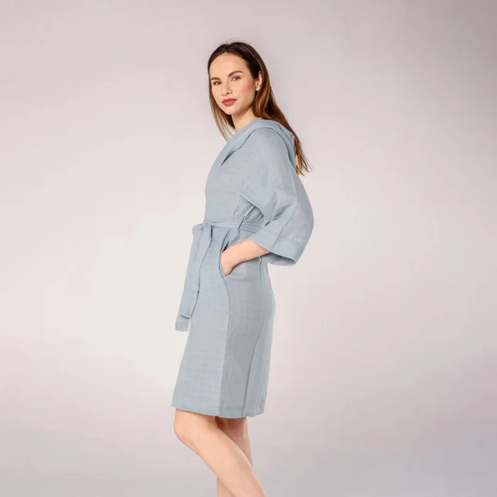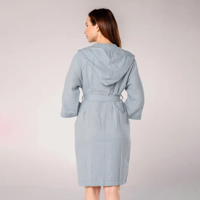Başak Nakışlı Müslin Bornoz, müslin kumaşından üretilmiştir.