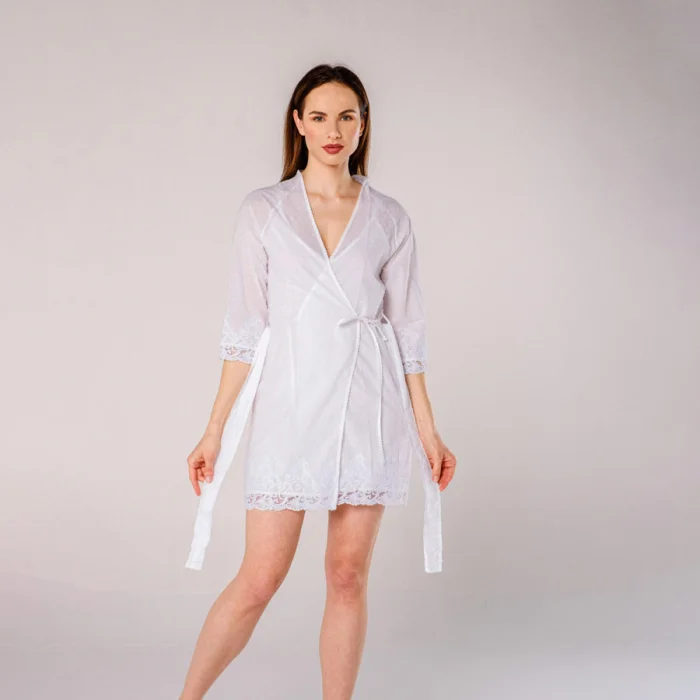 Miespiga Dantelli Kadın Sabahlık %100 Pamuk üretilmiştir.