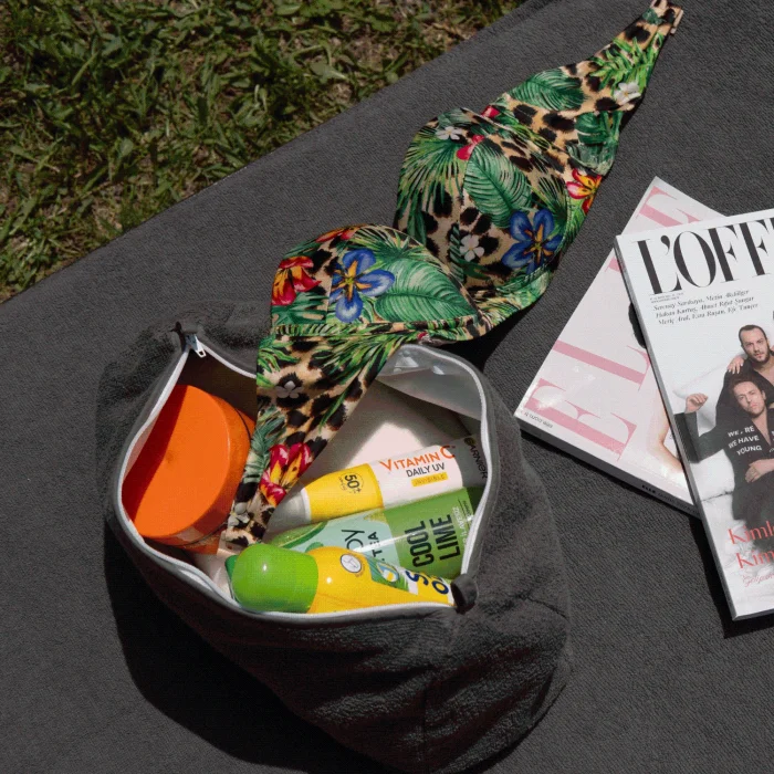 ORGANİZER TATİL ÇANTASI: 18x32 cm ebatında, su geçirmez iç astarlı, fermuarlı ve geniş hacimli. Güneş kremi, kitap, gözlük, ıslak mayolar gibi ürünleri rahatlıkla taşır.