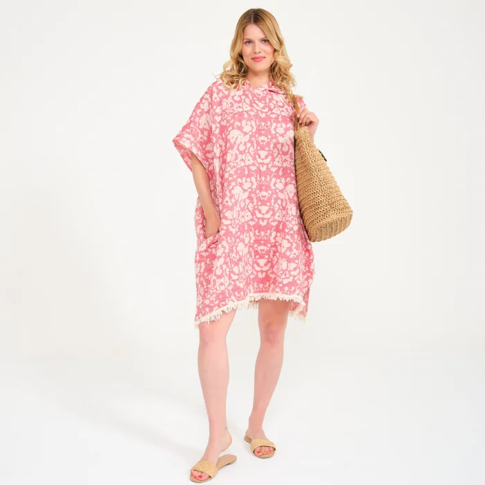 Ürün: Unisex Çiçek Desen Peştamal Surf Kapüşonlu Panço