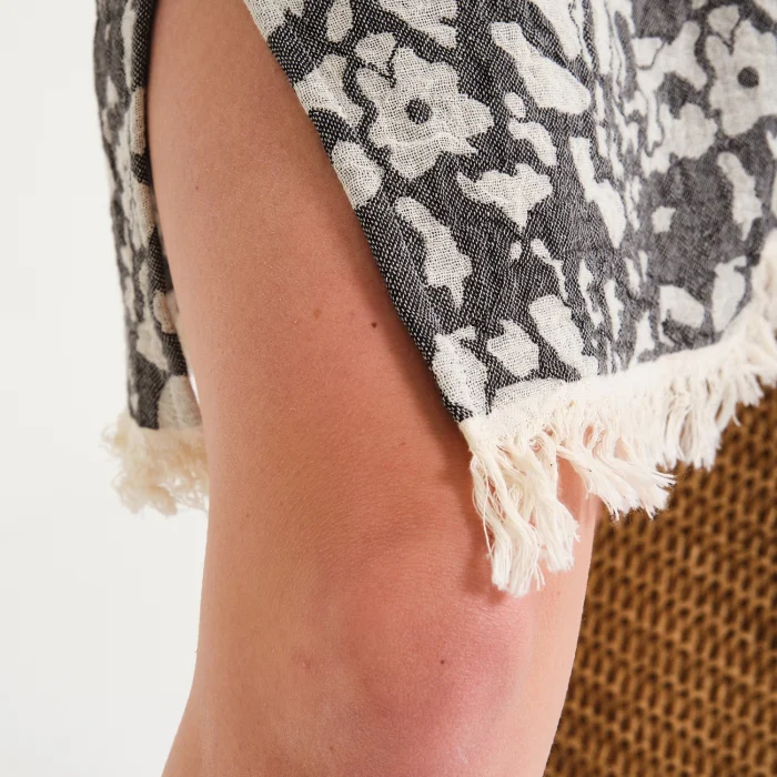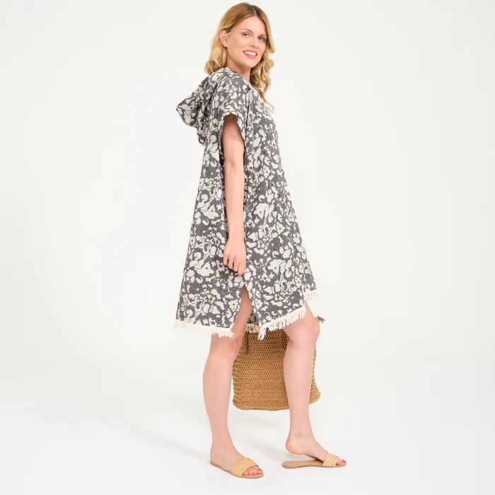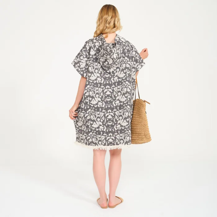 Ürün: Unisex Çiçek Desen Peştamal Surf Kapüşonlu Panço