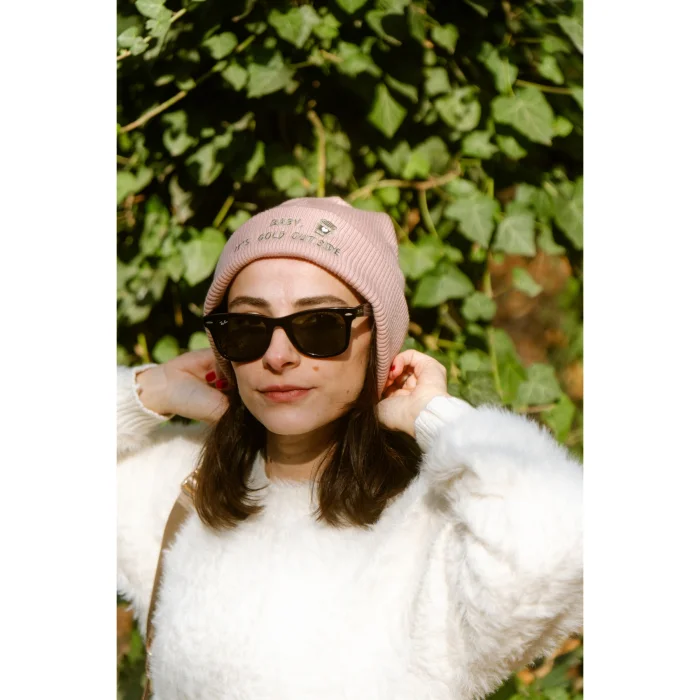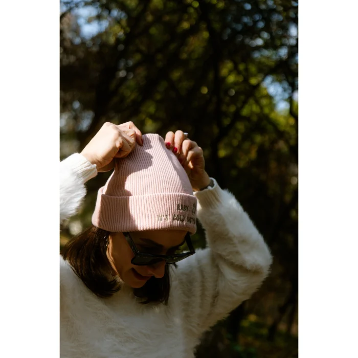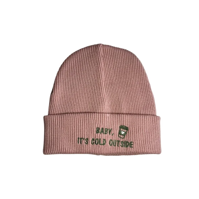 Ürün: Baby, It's Cold Outside Pembe Kışlık Nakışlı Yumuşak Triko Bere