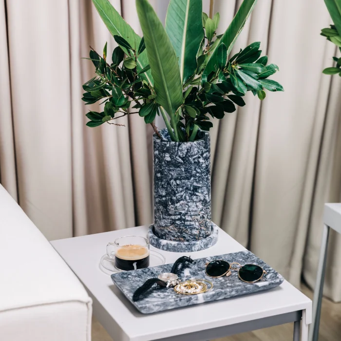 Ürün: Mermer Şarap Tutucu - Dekoratif Vazo, El İşçiliği Doğal Taş Masa Ve Sunum Aksesuarı, Modern
