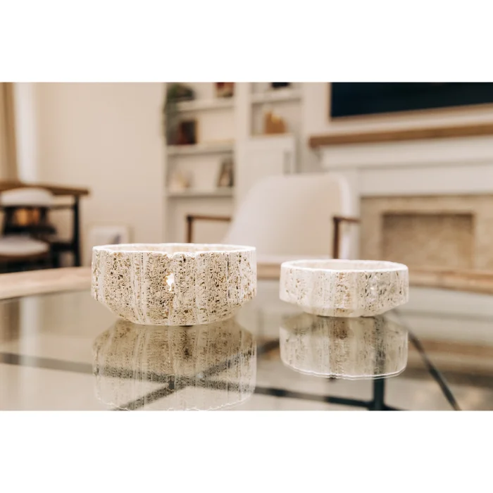 Ürün: Traverten Doğal Taş Mermer Kase Ve Sosluk, %100 El İşçiliği, Sunum İçin Dekoratif Obje