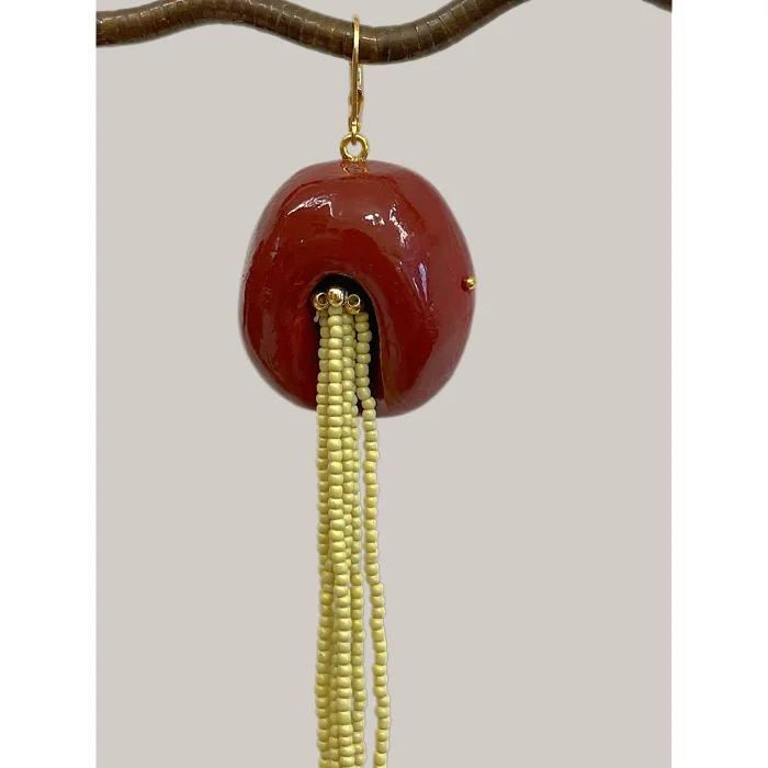 Hamurun elde şekillendirilmesi ile tasarlanmıştır. Küpe takma aparatı çeliktir.