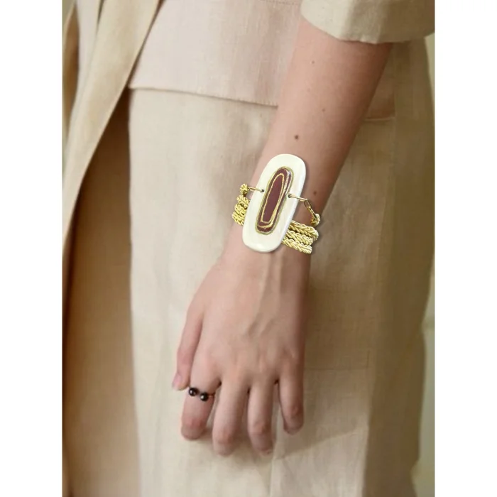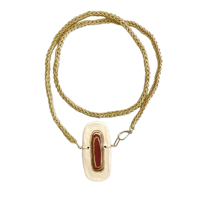 Tamamı el yapımı olup hamurun elde şekillendirilmesiyle tasarlanmıştır. Kullanılan asma aparatı çeliktir. Kordon kısmı özel el örgüsüdür.