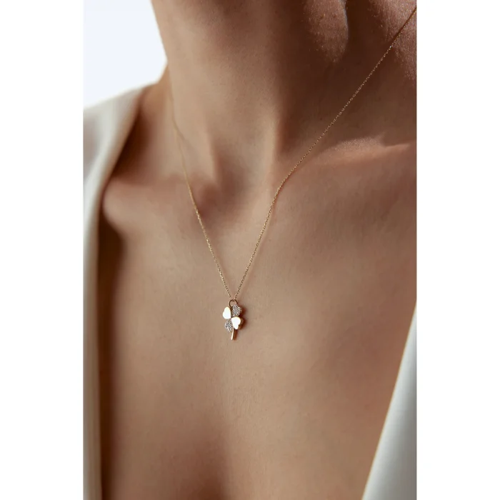 Ürün: 14 Ayar Altın Modern Taşlı Yonca Kolye