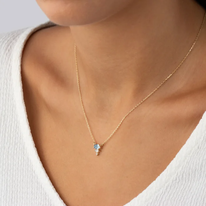 Ürün: 14 Ayar Altın Oval Akuamarin Taşlı Kolye
