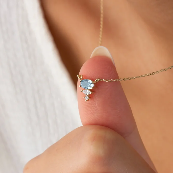 Ürün: 14 Ayar Altın Oval Akuamarin Taşlı Kolye