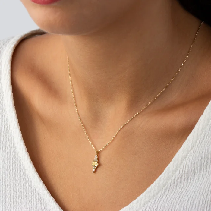Ürün: 14 Ayar Altın Sitrin Taşlı Tasarım Kolye