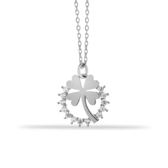 Ürün: 14 Ayar Altın Taşlı Halka Yonca Kolye