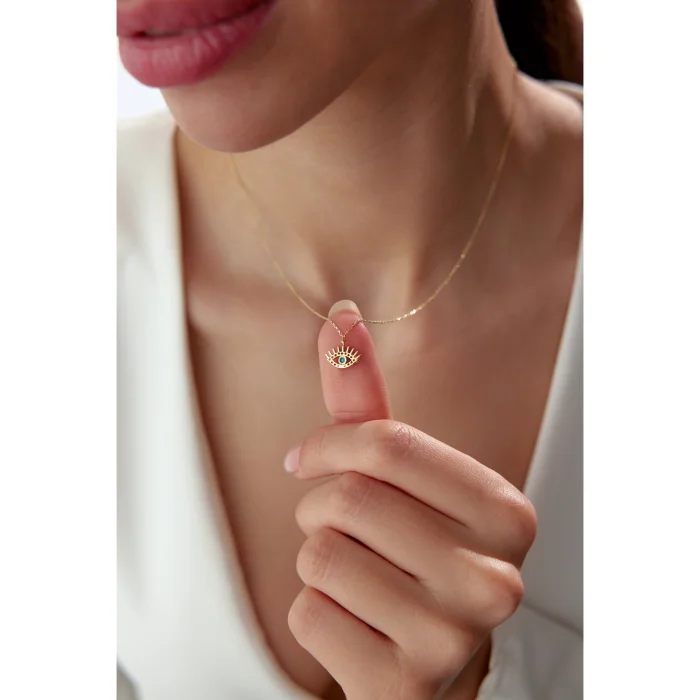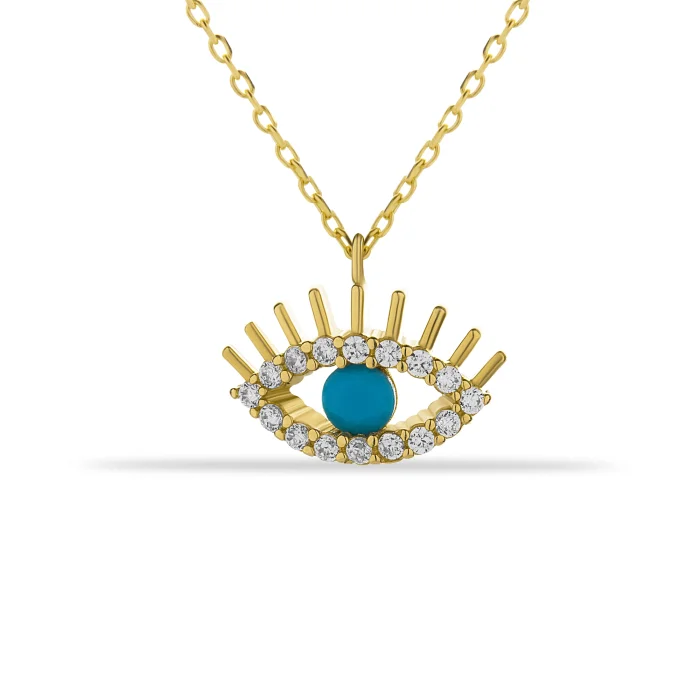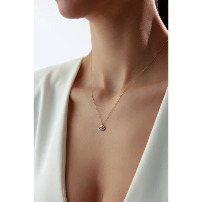 Ürün: 14 Ayar Altın Taşlı Modern Firuze Göz Kolye