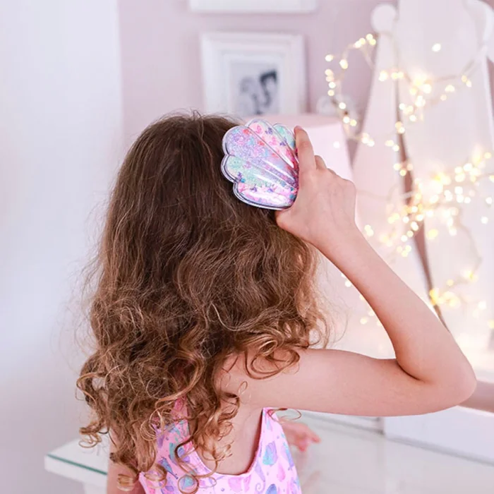 Little Mermaids Hairbrush Ürün Açıklaması: Küçük denizkızları için özel olarak tasarlanmış deniz kabuğu şeklindeki tarak, saçlarındaki dolaşıkları nazikçe açar ve plajda bunu bir oyuna çevirir. Materyal: Plastik, Akrilik Boyut: 9x10 cm