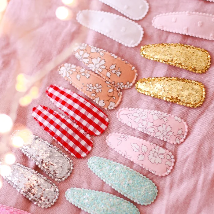 Mini Klips Tokaları, harika tasarımı ve Liberty London desenlerinin şık renkleriyle, ışıltılı glitter detaylarla birleşerek küçük kızlar için mükemmel bir saç aksesuarı sunar.