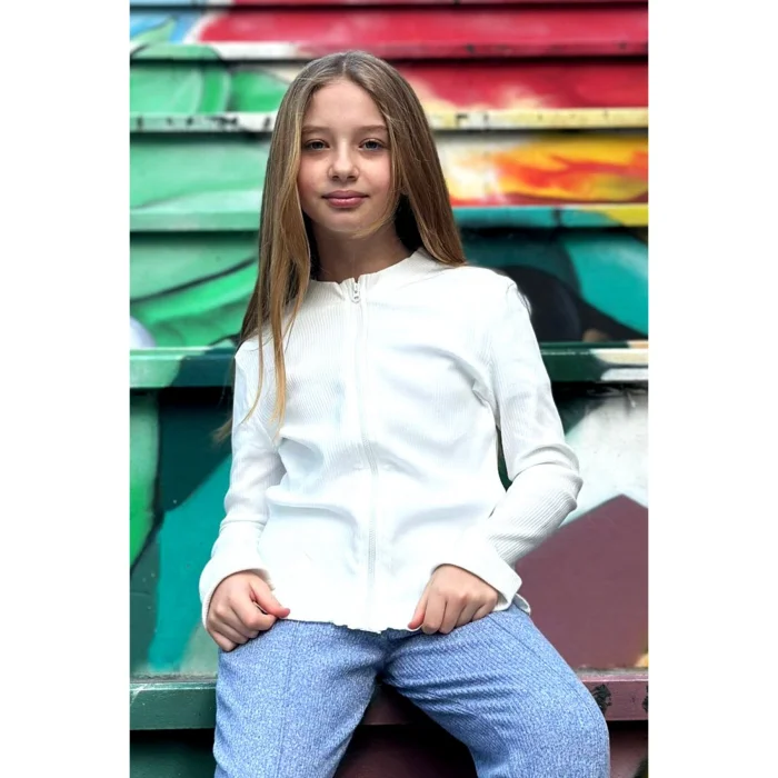 Okuldan oyun saatlerine kadar her an kullanıma uygun olan bu beyaz hırka, çocuklarınızın gardırobunun vazgeçilmezi olacak!