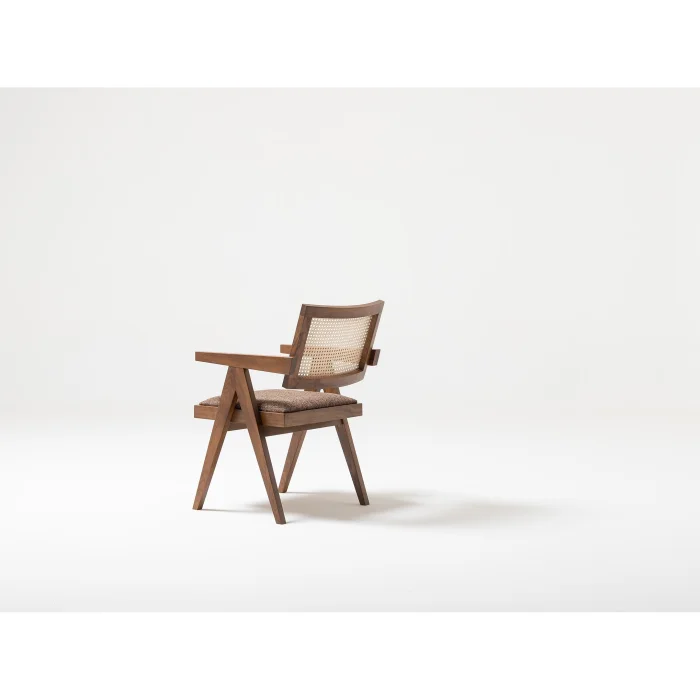 Doğal ahşabın sağlamlığı, hasır sırt detayı ve geometrik formuyla birleşerek oturma alanlarınıza estetik bir dokunuş katıyor.