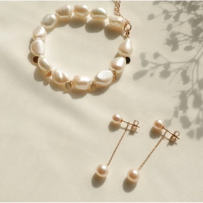 925 Ayar Gümüş üzeri kararmaya karşı dayanıklı Mikro Rodyum kaplamadır. Doğal Tatlı Su İncisi