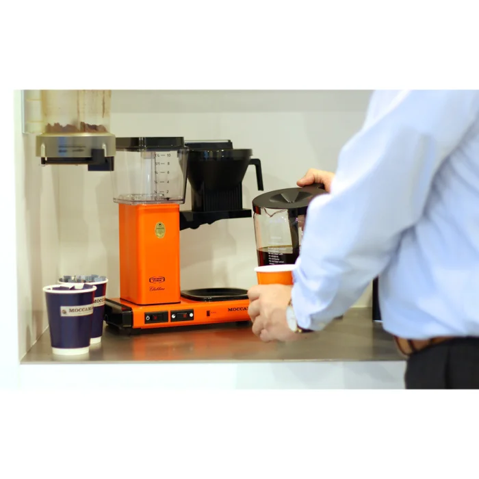 Moccamaster Cup-one, Technivorm'un Moccamaster kahve makinelerindeki en son yeniliklerden. Isıtma aparatının titreşimli kısmı, su ve kahvenin harmanlanması için en uygun süreyi sağlar. Moccamaster Cup-one, size nostaljik bir kahve hazırlar ve doğrudan uygun bir bardakta harika bir tat sunar!
