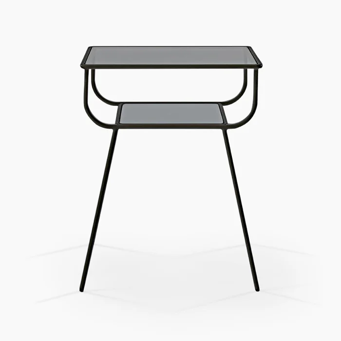 Metal parçalar siyah statik fırın boyalı ve dökme demirdendir. Üst ve alt tabla 6mm kalınlığında füme camdır.