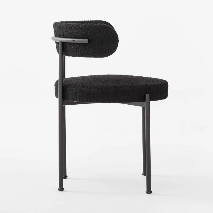 İskelet metal boru malzemeden üretilmiştir. Metal kısımlar mat siyah elektrostatik fırın boya ile boyanmıştır. Oturak kısmında kullanılan sünger 32 Dns'dir. Teddy kumaş kullanılmıştır.