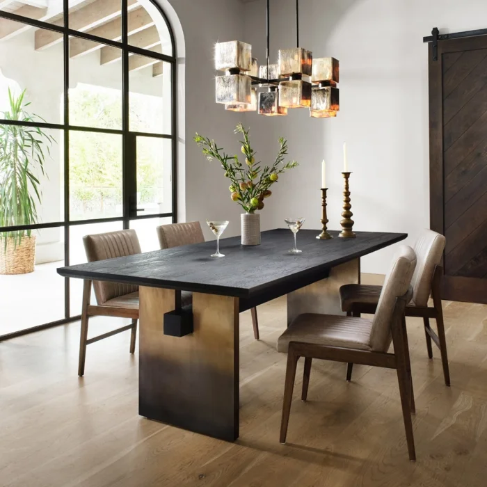 Kayın ağacından üretilen ahşap kısımlar ceviz renk cila ile boyanmıştır. Oturak ve sırt kısmı suni deri döşemedir. Tekil yada yemek masası sandalyesi olarak kullanılabilir.