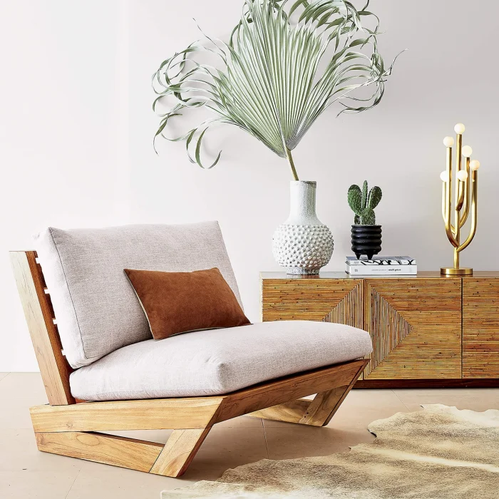 Kayın ağacından imal edilen berjerin ahşap kısımları naturel cila ile boyanmıştır. Oturma ve sırt minderdir.