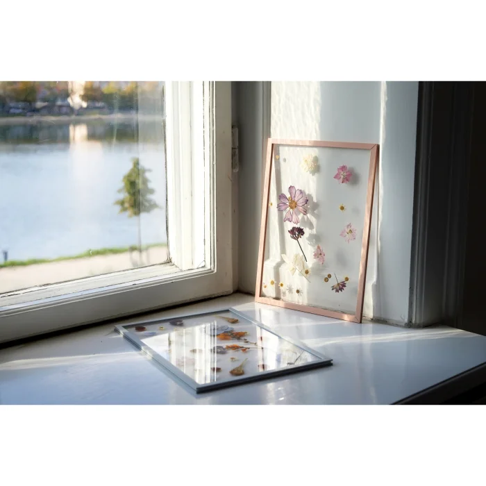Bu minimalist çerçeve siyah boyalı alüminyum çerçeve ve akrilikten yapılmıştır. Çerçeve, aynı zamanda duvar askısı için de kullanılabilen siyah bir lastik bant ile bir arada tutulur. Fiyat yalnızca çerçeve için geçerlidir. İçindeki resim dahil değildir.