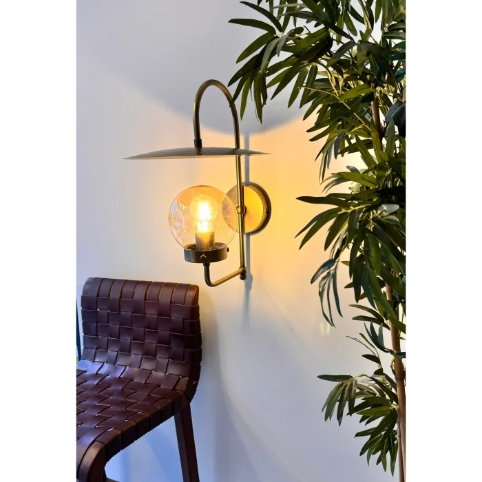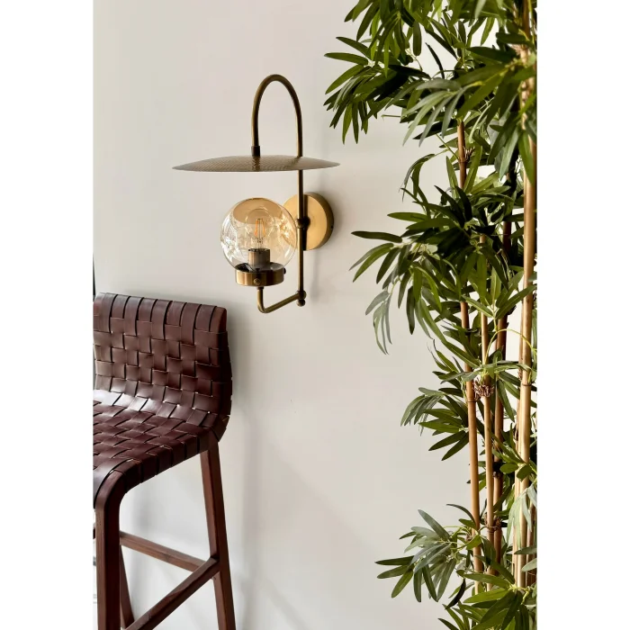 Charlie Prinç Kaplama dövme demir el yapımı duvar aydınlatması. Ürün Ölçüleri : Genişlik : 35 cm çap Yükseklik : 44 cm Materyaller : Prinç Kaplama -Cam -E-27 Ampulle çalışır. Sipariş üzerine üretim yapılır. Elektriklidir.
