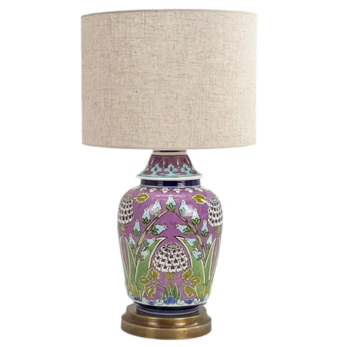 Hint Çiçek bahçesinden esinlenen bu Desenli ve karizmatik gövdeli bu seramik abajur tamamen el işçiliğiyle üretilmiştir.