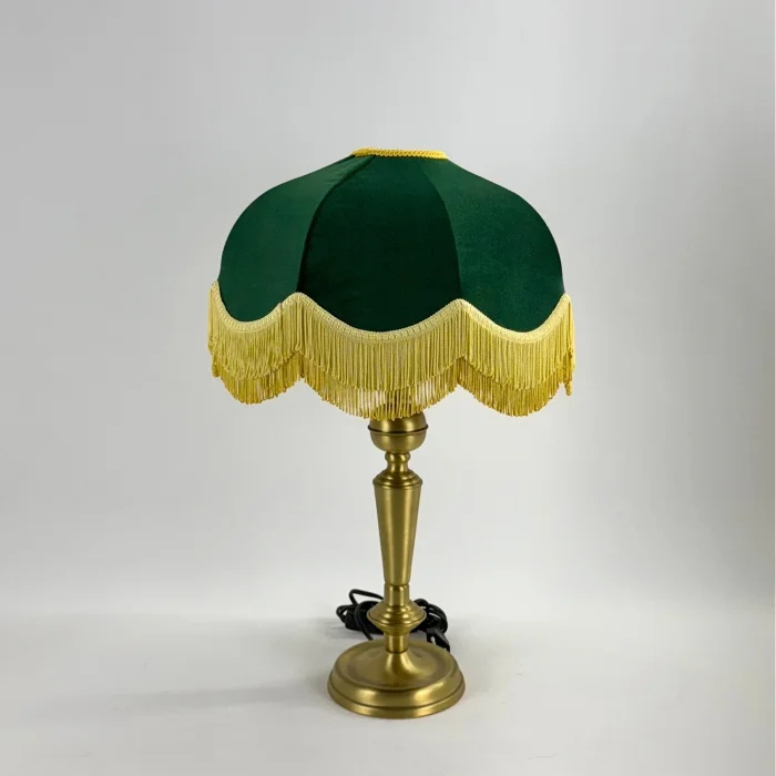 Ürün Ölçüleri : Genişlik : 35 cm Yükseklik :52 cm Materyaller : Gövde: Gerçek Prinç Başlık: Kadife kumaş başlık E-27 Duy Ürün üzerinde 2 metre aç/ kapa anahtarlı fişli kablo vardır.
