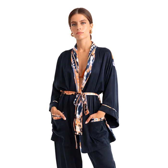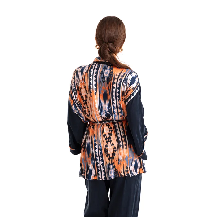 •Uzun yarasa kollu •Sırt, cepler ve kemer parlak Cupro saten. •Beli Kemerli •Tam uzunluk enseden 75 cm •Karbon ayak izi bırakmayan bu malzeme, başından sonuna kadar hayvansal malzeme olmamasını sağlayan yenilikçi bir vegan tekstil işlemiyle üretildi. •Yumuşacık ipeksi kumaş size nazik olduğu kadar dünyaya da nazik
