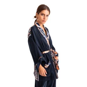 •Uzun yarasa kollu •Sırt, cepler ve kemer parlak Cupro saten. •Beli Kemerli •Tam uzunluk enseden 75 cm •Karbon ayak izi bırakmayan bu malzeme, başından sonuna kadar hayvansal malzeme olmamasını sağlayan yenilikçi bir vegan tekstil işlemiyle üretildi. •Yumuşacık ipeksi kumaş size nazik olduğu kadar dünyaya da nazik
