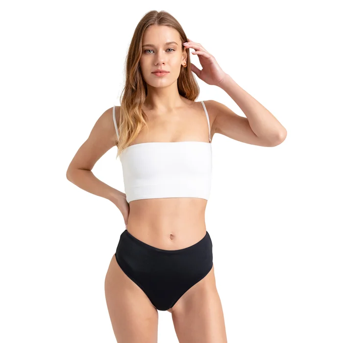 • Siyah/Beyaz mat yumuşak dokulu kumaş • Ayarlanabilir & çıkabilen askılı bandeau üst • Yüksek bel alt • İç göstermemesi için çift kat astar kullanılmıştır. • Çıkarılabilen push-up sünger desteklidir. • % 80 Polyamid % 20 Lycra® • Resimdeki model'in bedeni 34, giydiği ürün bedeni xs (34) bedendir. • Made in Turkey