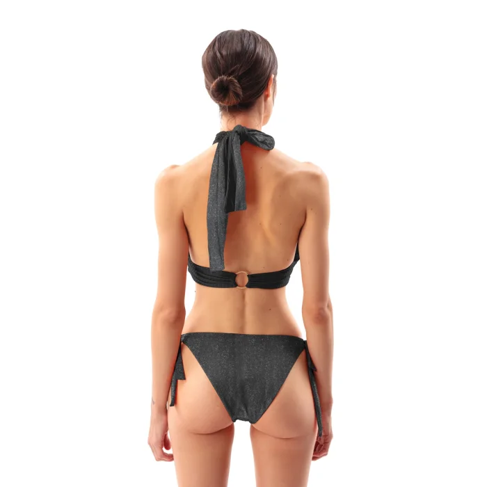 • Boyundan bağlı çapraz halter bikini üstü. • Boyun kısmından veya arkadaki altın halkaya bağlanabilir. • Göğüs altında ve sırtta büzgülü halka detaylı bant. • Renk bloklarıyla tasarlanmıştır. • Yandan bağlı ve yüksek bacak kesimli bikini altı. • Yumuşak kabaralı kumaş ve havlu dokulu desenli kumaştan yapılmıştır. • Ekstra konfor için astarlanmıştır. • Çıkarılabilir sünger kapları bulunmaktadır. • %86 Polyamide, %14 Elastane'den yapılmıştır. • Resimdeki mankenin giydiği ürün bedeni S (36) bedendir. • Manken ölçüleri: 89/61/92 Boy: 1.79 cm