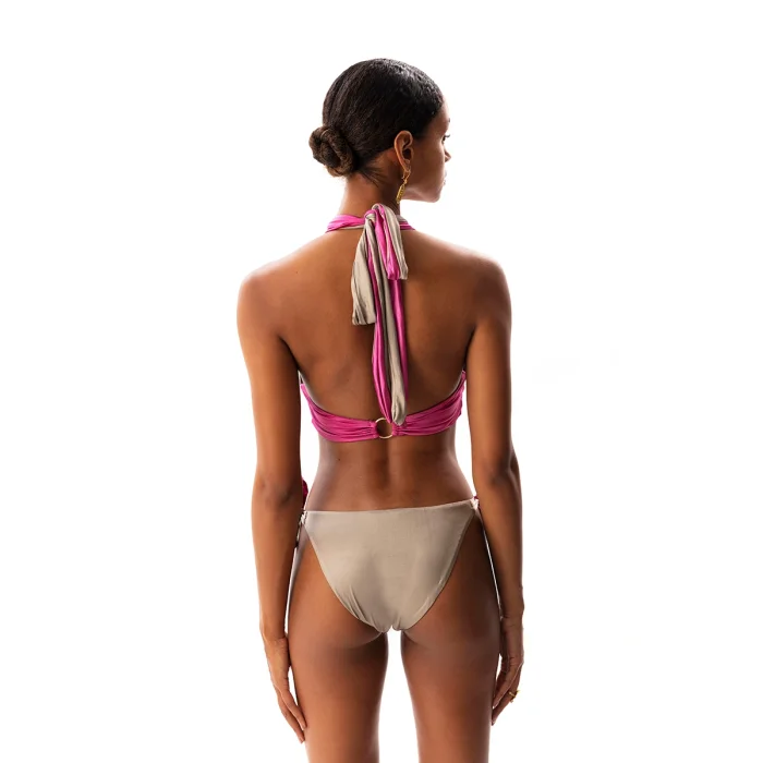 • Yumuşacık çok parlak metalik kumaş • Fuşya ve gümüş renk • Göğüs altına büzgülü bantlı • Önde çapraz gelip boyunda ya da sırttaki halkadan farklı şekillerde bağlanabilir. • Yandan bağlamalı bikini altı • % 89 Poliamid % 11 Elastan • Çıkarılabilir sünger kaplar mevcuttur • Resimdeki mankenin giydiği ürün bedeni XS (34) bedendir • Manken ölçüleri:83/58/90