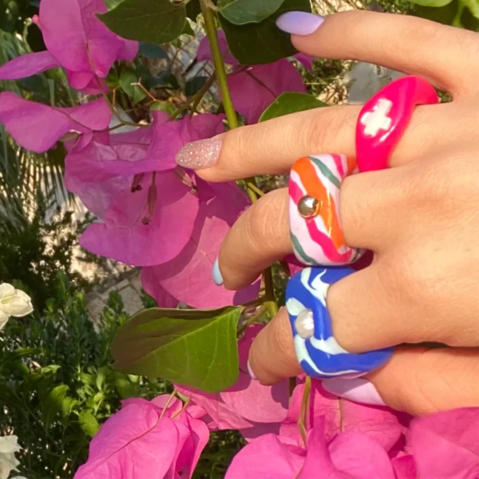 Polimer kil ve sedef taşı kullanılmıştır.