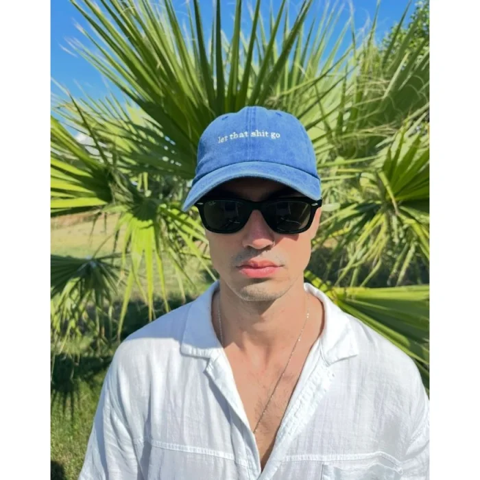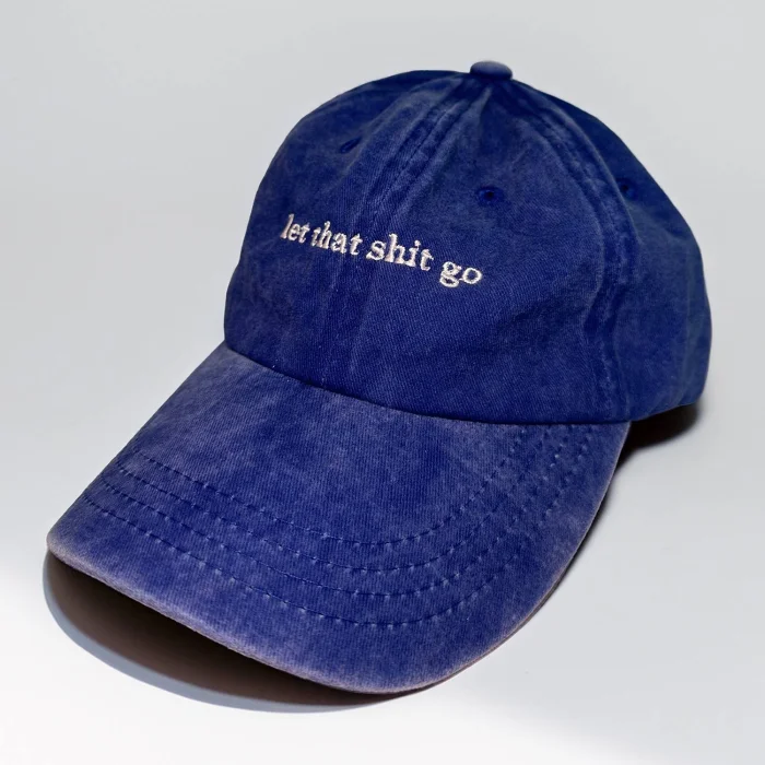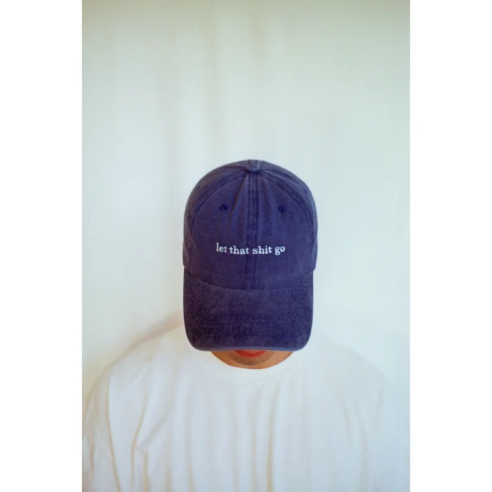 "let that shit go" nakışlı cap. tek beden. arkada bulunan tokası sayesinde boyutu ayarlanabilir. pamuklu kumaştan üretilmiştir.
