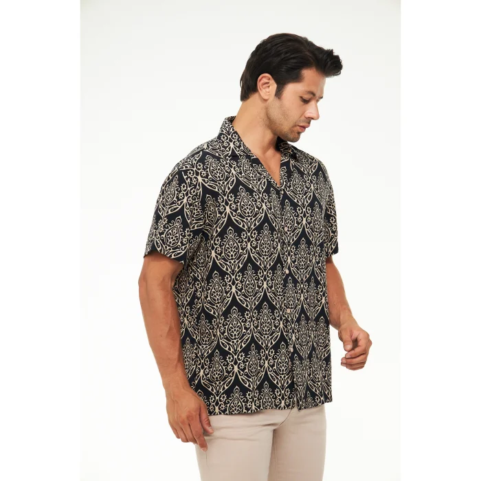 Pamuk Viskon Kumaş Rahat Kesim Desenli erkek Gömlek