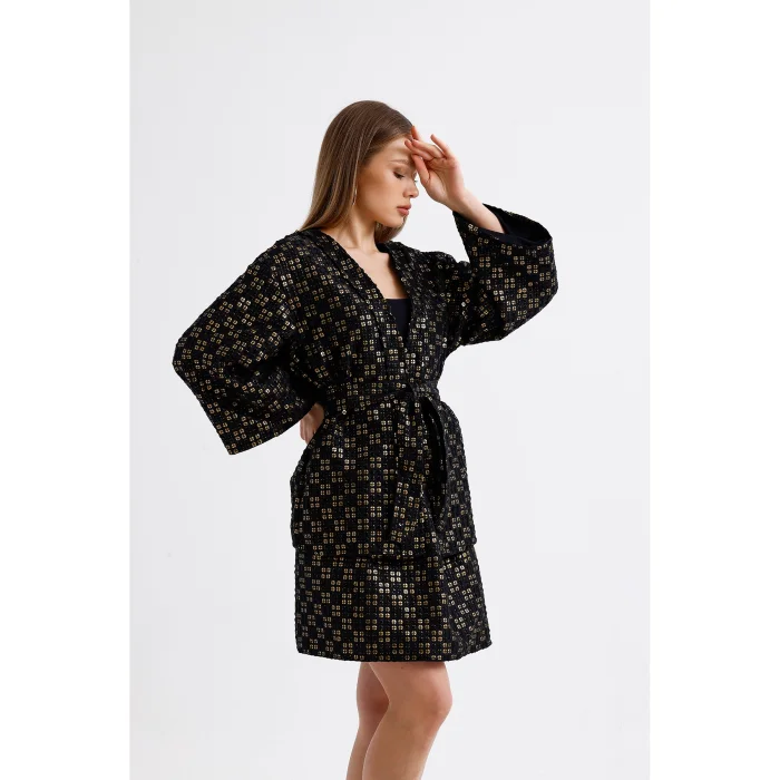 Özel dokuma kumaş ceket kesimli tasarım kimono