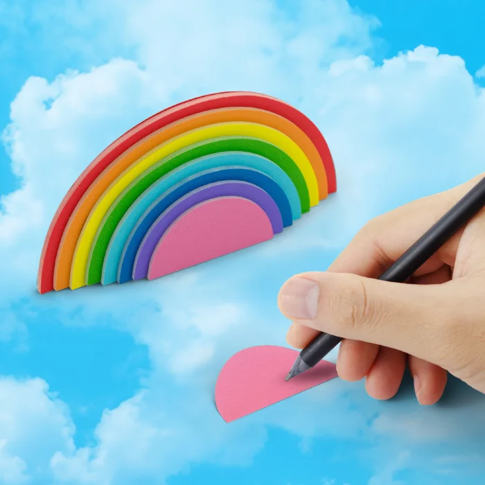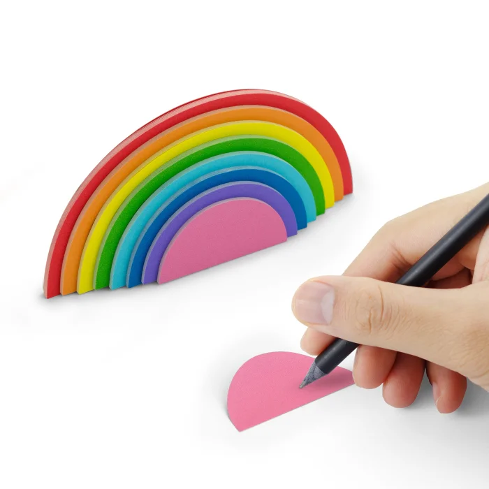 Gökkuşağı temalı yapışkan not kağıtları 150 sayfa ve çok önemli bir şeyi hatırlamak için 150 sihirli şans sunar.