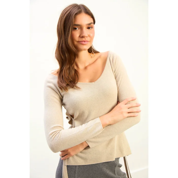 Ürün Kodu: KEVIN Çapraz bağlamalı Ekru triko kazak l
