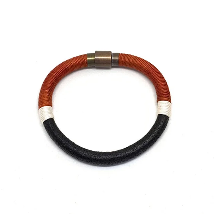 Malzeme: Deri kordon, Bitkilerle boyanmış ipek iplik, Kaplanmış pirinç aksesuar-magnet