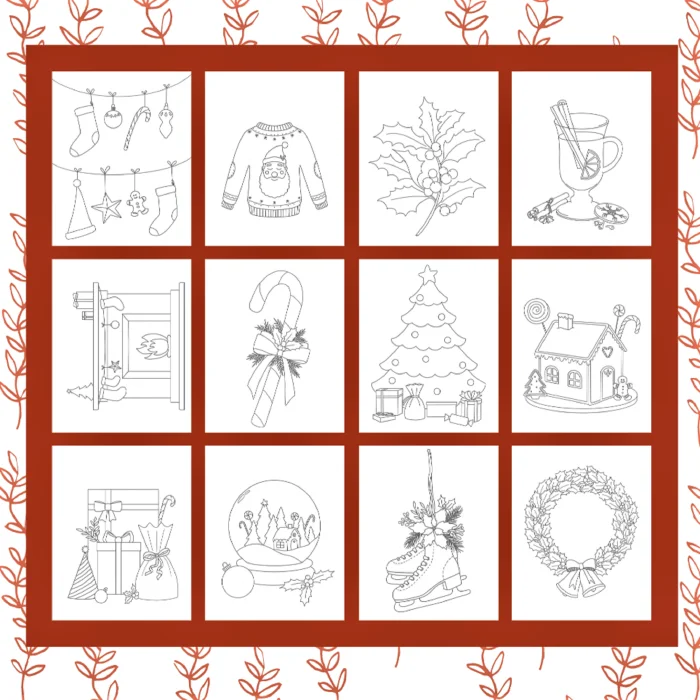 Boyayıp çerçeveletmeye hazır 12 farklı yılbaşı temalı çizimden oluşur. Yüksek kalite Canson 300 gram suluboya çalışma kağıdına basılmış çizimler, suluboya uygulamalarında kolaylık sağlar.